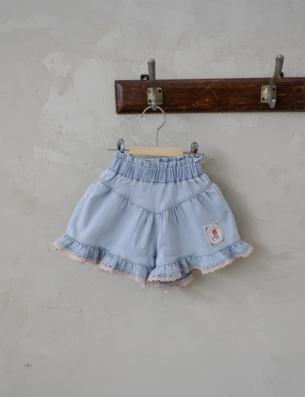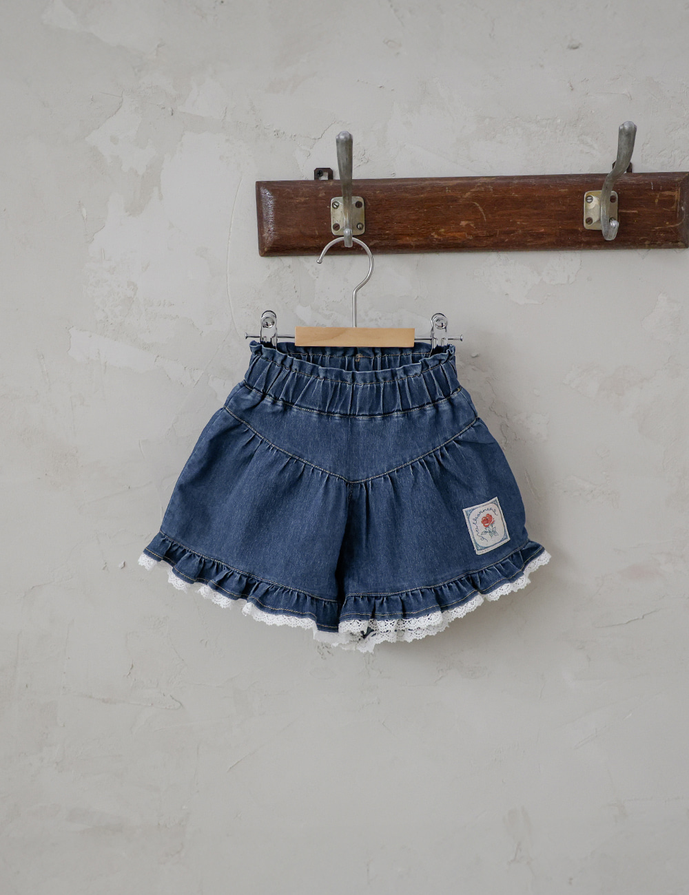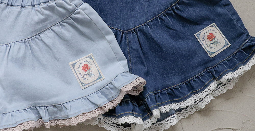 032321玫瑰花貼布牛仔短褲(兩色)
