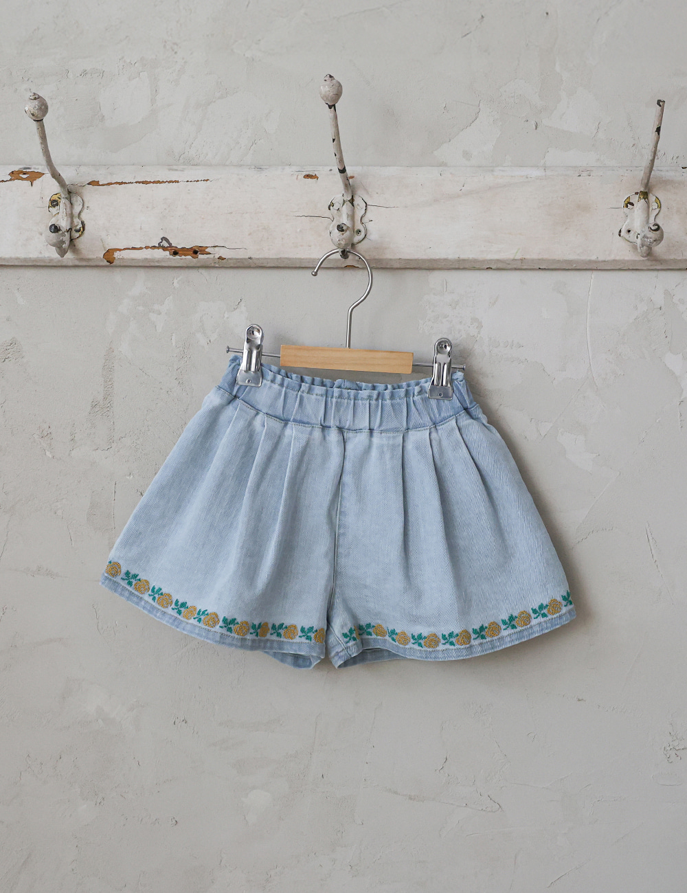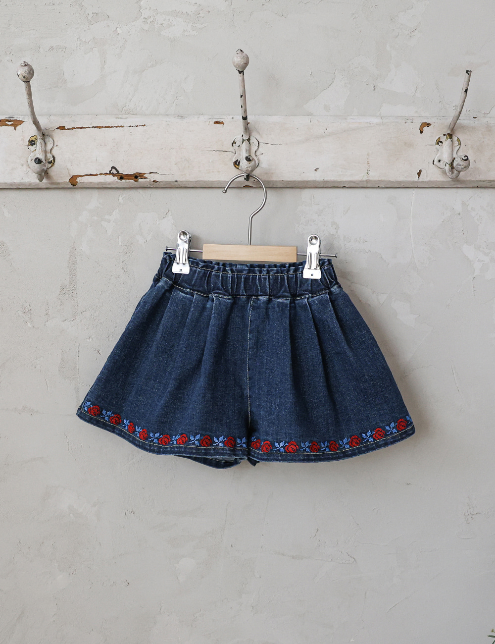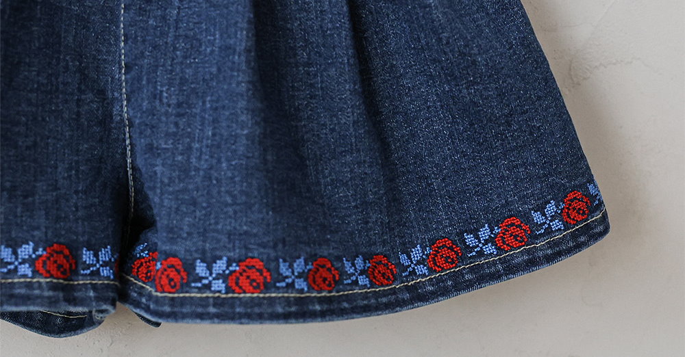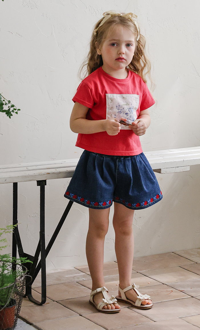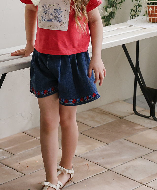 032321玫瑰花貼布牛仔短褲(兩色)