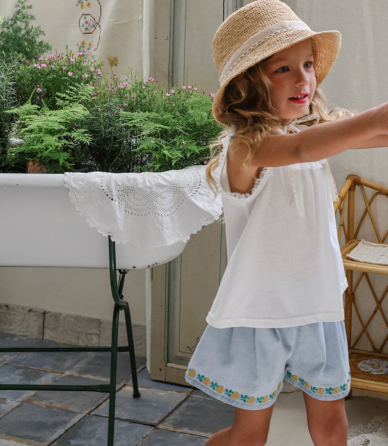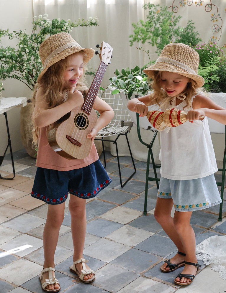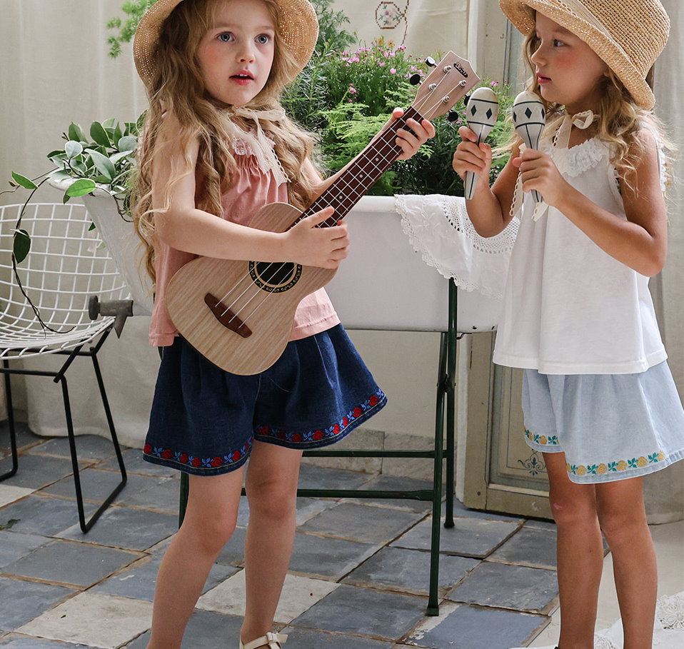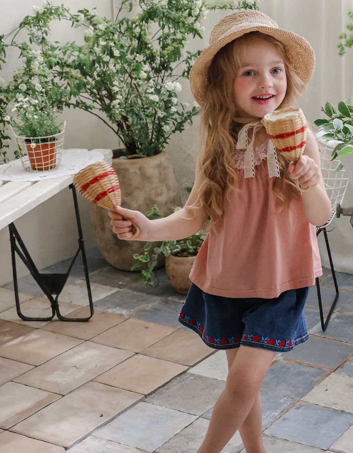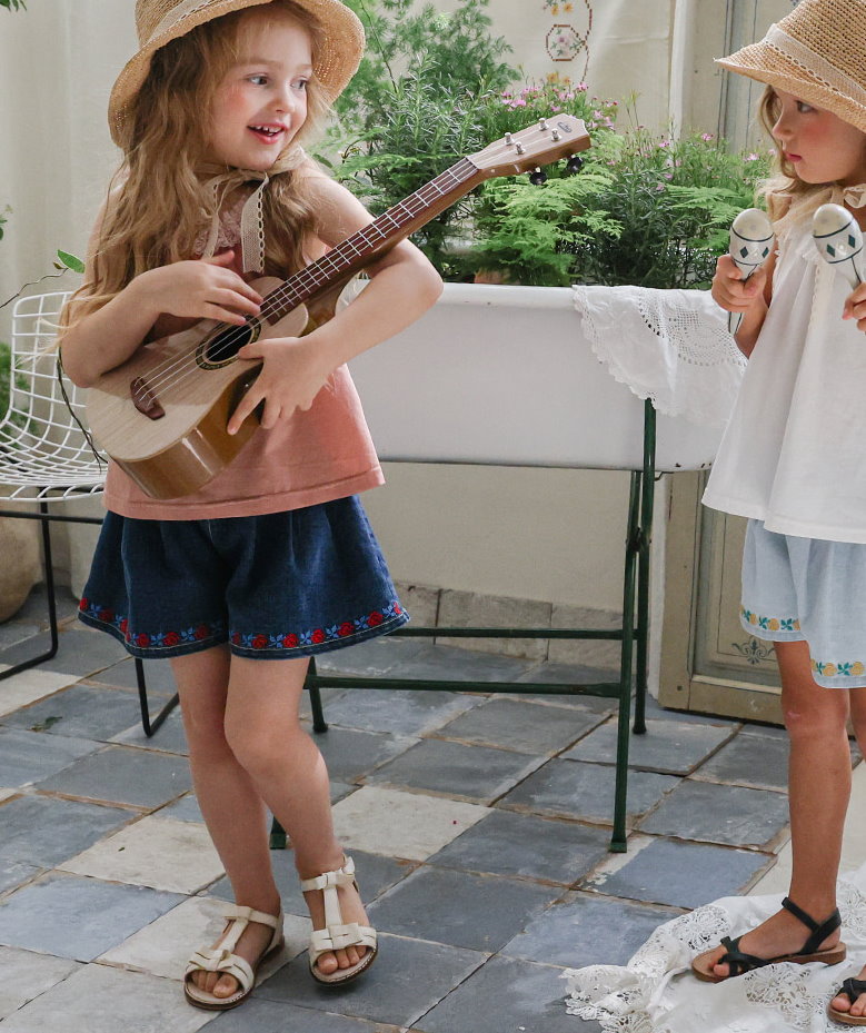 032321玫瑰花貼布牛仔短褲(兩色)