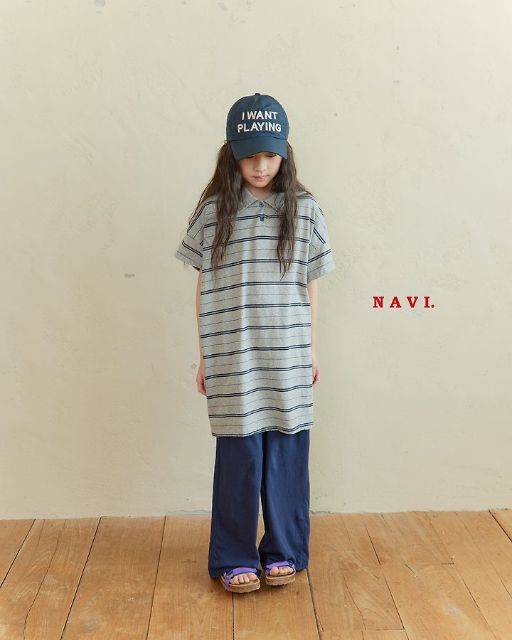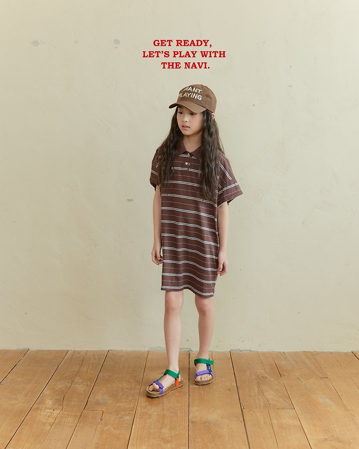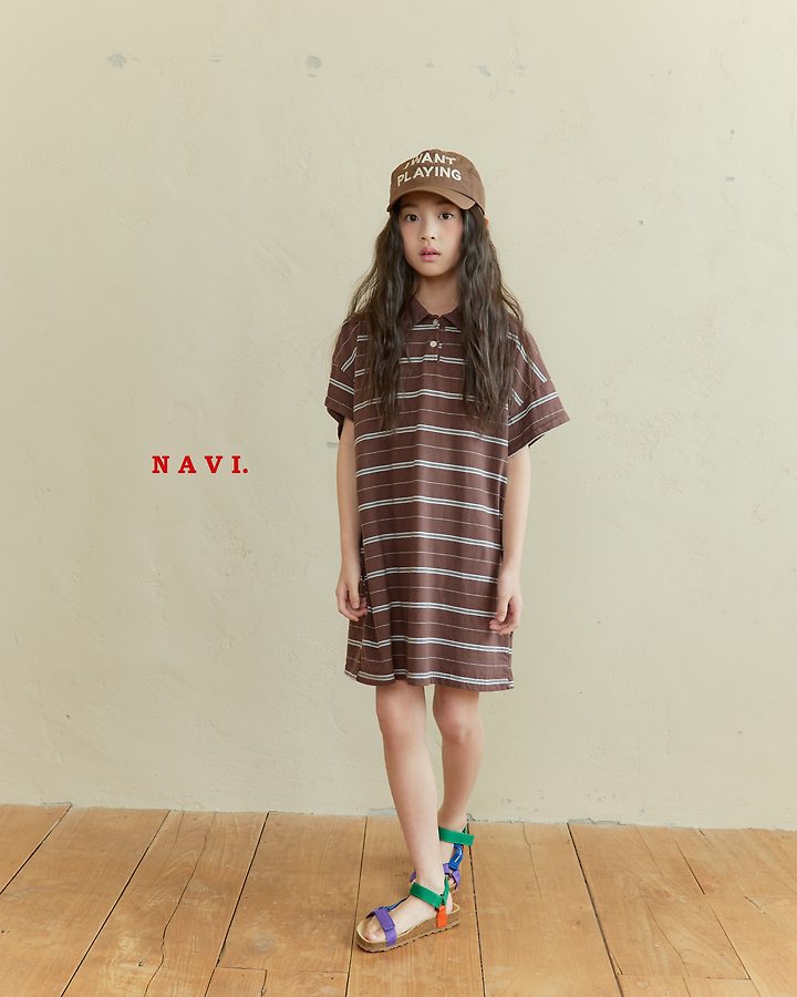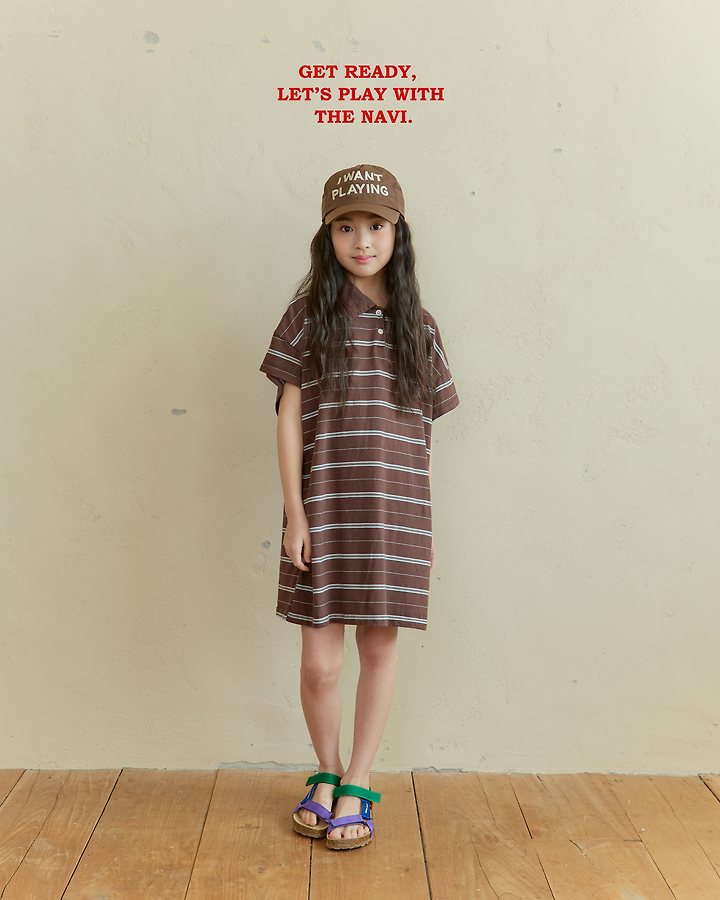 041531翻領條紋連身裙(兩色)